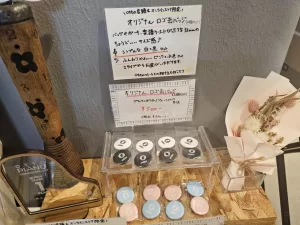 オリジナルグッズはお店に入ってすぐ目の前の棚で展示しております!