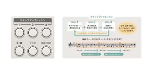 ステップアップレッスンでは、片手ずつ・両手それぞれのパート別に3ステップでレッスンができます。