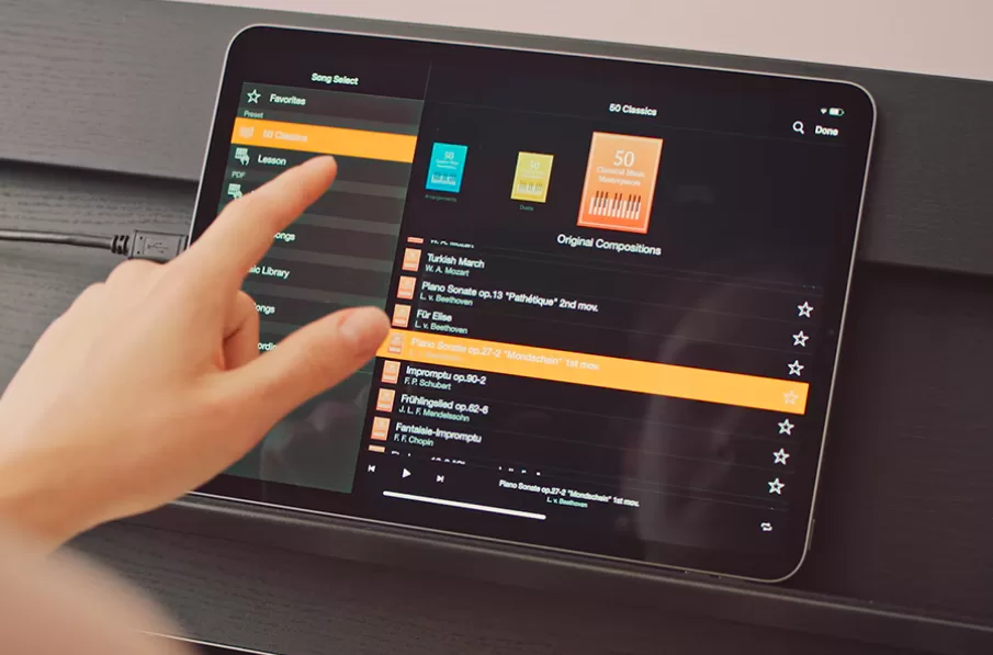 内蔵曲数も豊富でクラシック名曲50選+レッスン曲303曲など、練習にもぴったりです。無料アプリ「Smart Pianist」にも対応しており、音色選びや内蔵曲の楽譜表示などがスマホで操作できます。