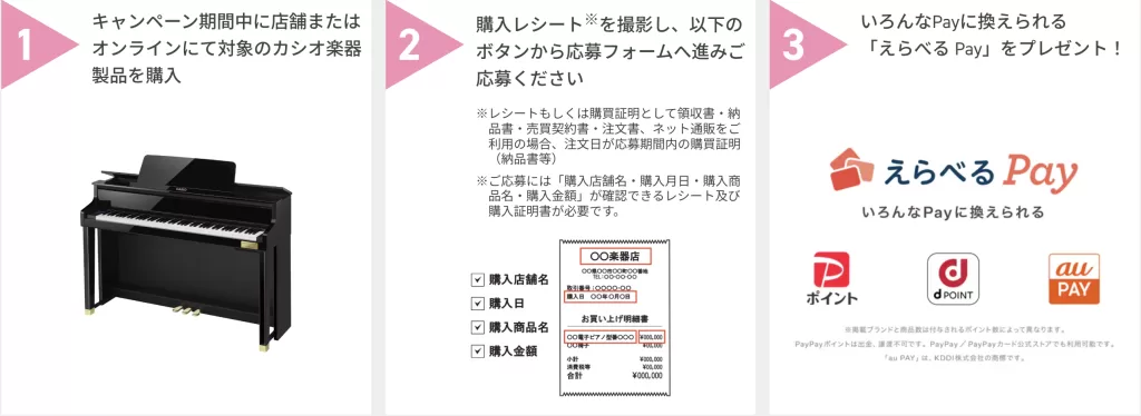期間中に対象商品ご購入&ご応募で、ご購入製品に応じて「えらべるpay」で最大2万円分プレゼント!