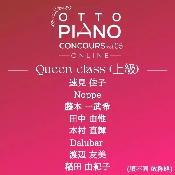 クィーン(上級)部門 ファイナリストピアノ演奏一覧(順不同)
